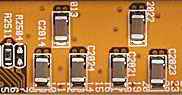 许多品牌主板在CPU槽附近都使用了3300微法左右的多个大容量电解电容器附加贴片电容的设计,以充分保证CPU工作时电压和电流的稳定性。